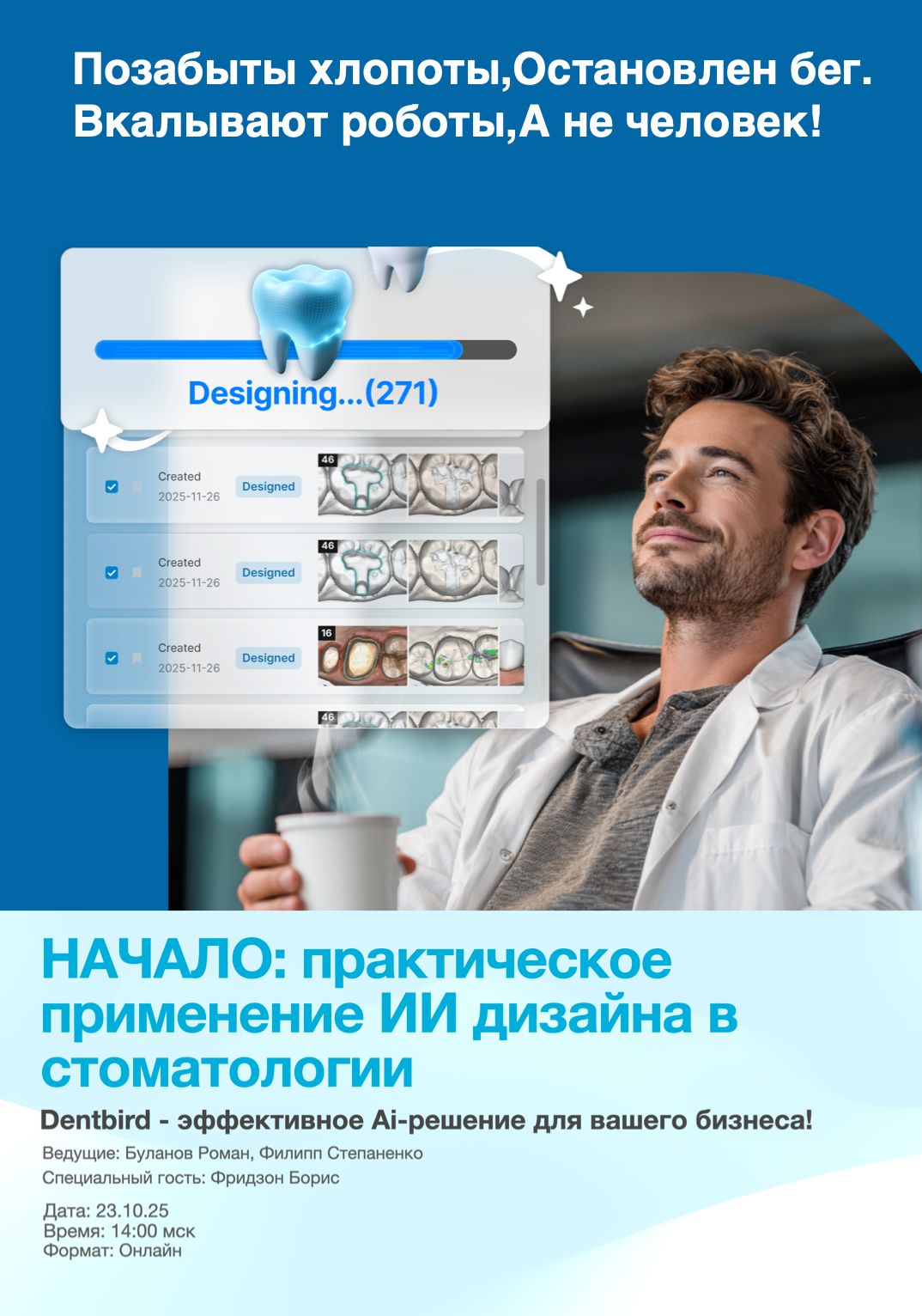 Приглашаем вас на эксклюзивный вебинар, посвящённый революционной программе Dentbird с полноценным ИИ-модулем.